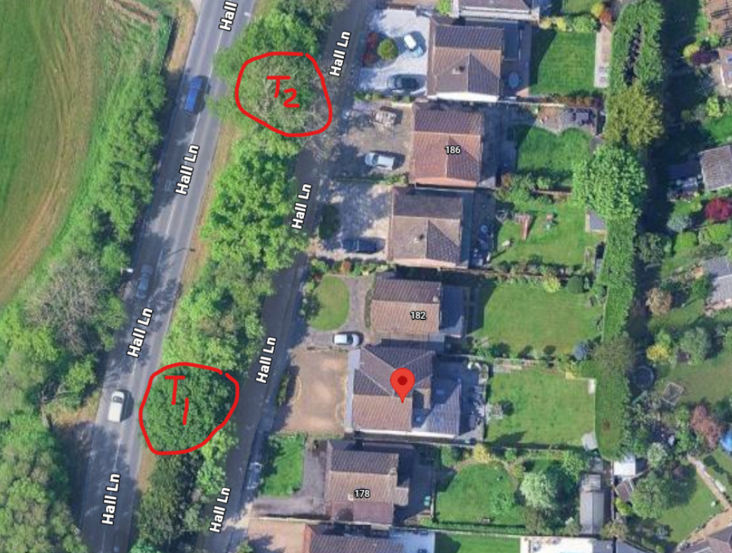 You can find this tree by visiting Havering Council's Report an Issue with a Tree - Starter Portal and using the location as the reference.